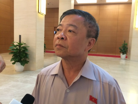 Ông Võ Kim Cự trao đổi với báo chí bên hành lang Quốc hội sáng nay 25/7 (Ảnh: Thế Kha). |