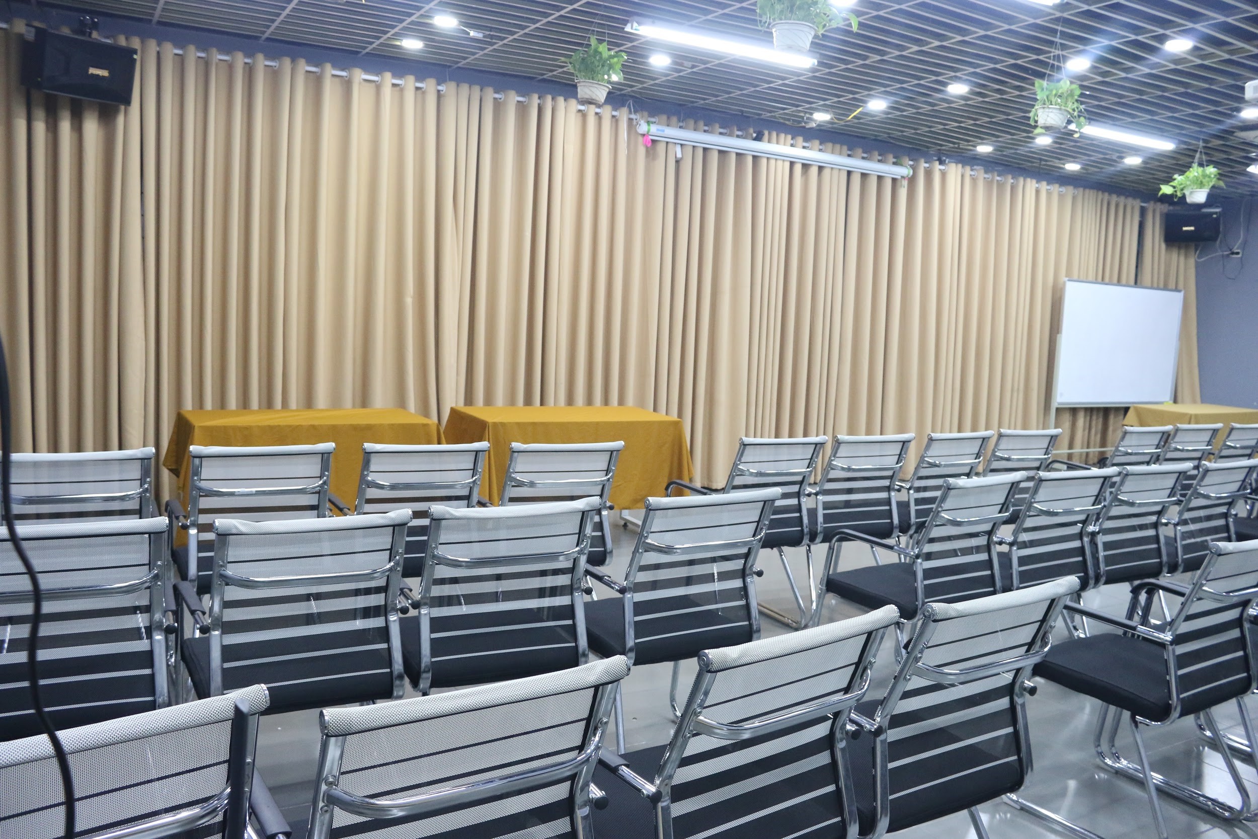 Phòng hội thảo 100 chỗ ngồi được setup theo từng nhu cầu của khách hàng: kiểu chữ U cho các cuộc họp, kiểu rạp hát cho hội thảo, họp báo, kiểu bàn học cho các khóa học cần ghi chép hoặc cần sử dụng máy tính. Đội ngũ nhân viên nhanh nhẹn, nhiệt tình, đảm bảo hoàn thành chuẩn chỉnh trước lúc bàn giao phòng.