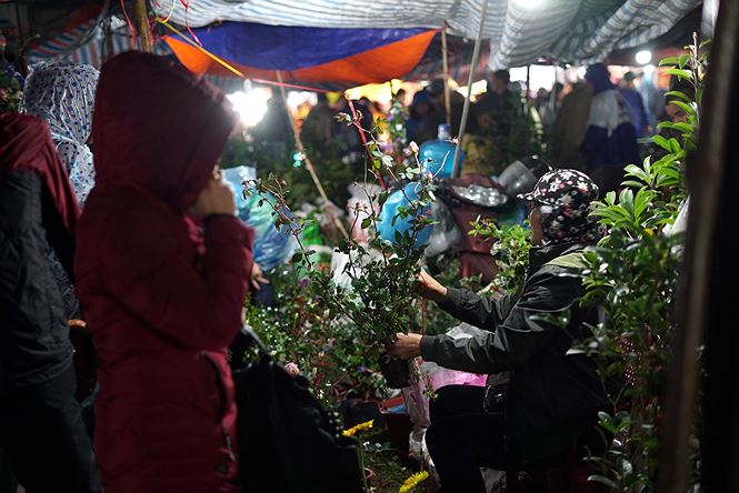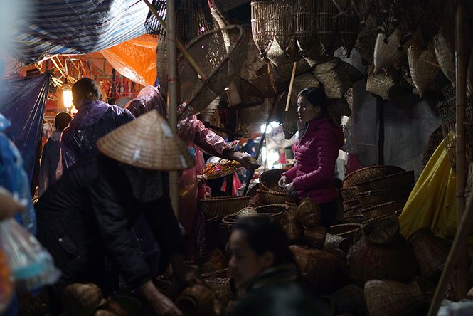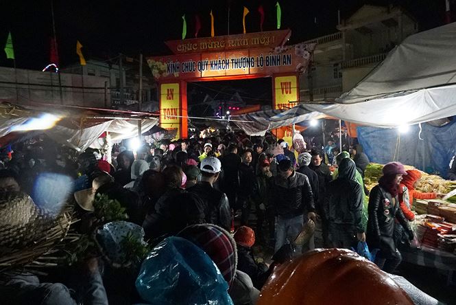 Lượng người đổ về chợ Viềng càng đông vì theo quan niệm vào thời khắc chuyển giao từ ngày 7 sang ngày 8 là thời điểm tốt lành nhất cho việc mua bán. Ảnh: Tiền Phong |
