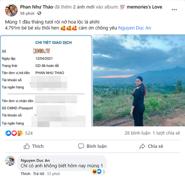 Mới đây trên trang Facebook cá nhân, người mẫu Phan Như Thảo hào hứng khoe món quà ngày đầu tháng mà cô được nhận từ ông xã của mình- doanh nhân Đức An. Đại gia Đức An lần này khiến không ít người trầm trồ, ngưỡng mộ khi tặng cho Phan Như Thảo một mảnh đất ở Lâm Đồng rộng tới 4791m2. |