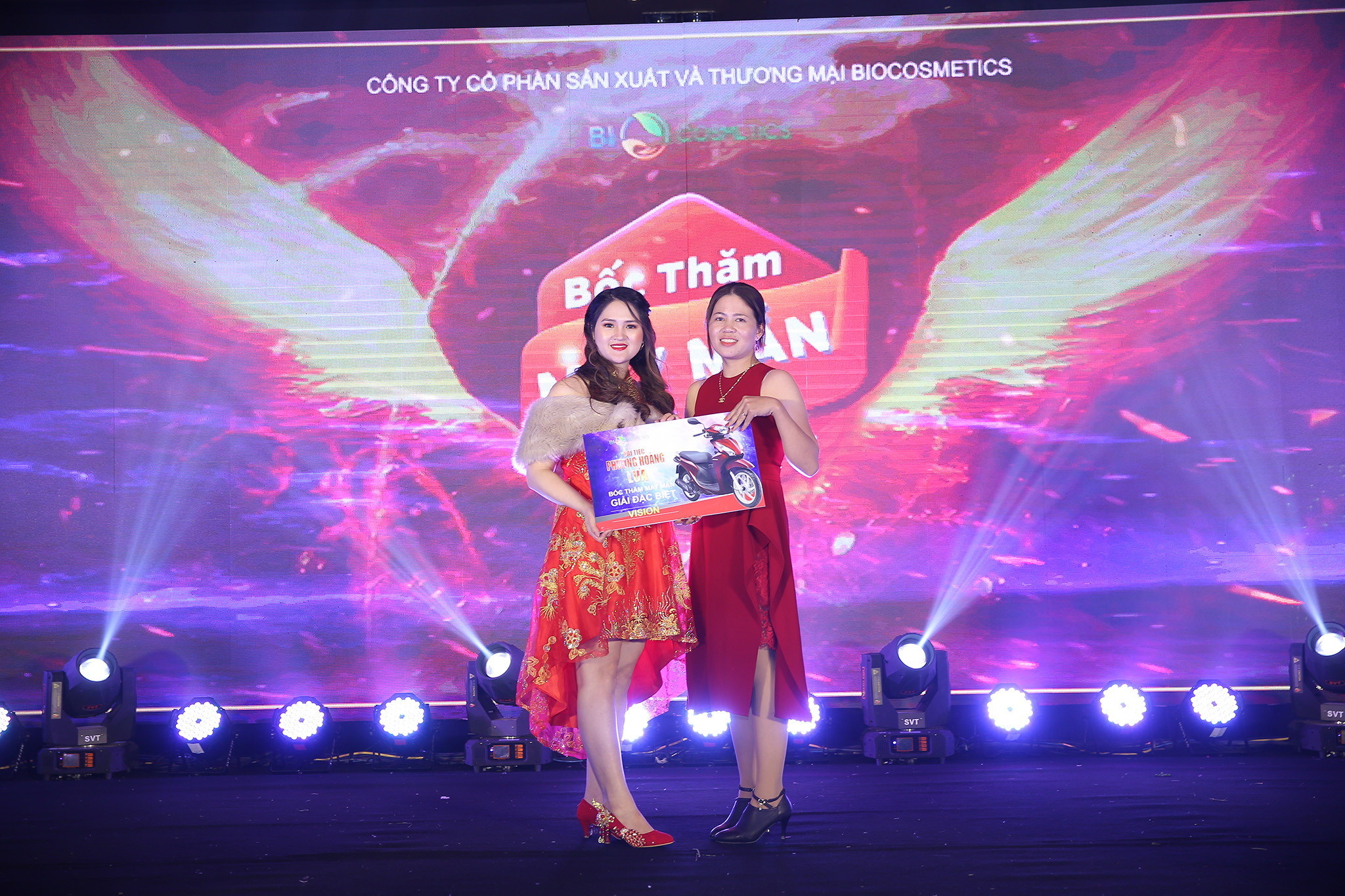 Đặc biệt hơn nữa là phần “bùng nổ” quà tặng dành cho những người may mắn nhất tham gia bốc thăm trúng thưởng, mini game. Các phần thưởng trong sự kiện đều có giá trị rất cao, rất hữu ích và thiết thực đối với mọi gia đình. Điều khiến cho bất cứ ai cũng vô cùng phấn khích tại sự kiện Phượng Hoàng Lửa đó là công ty đã có quà tặng giá trị cho tất cả khách mời và đại lý của Bio Cosmetics tham dự sự kiện.