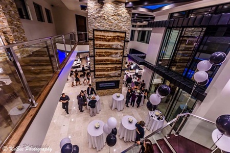 Biệt thự của vợ chồng ca sĩ được xây dựng theo lối kiến trúc hiện đại, nội thất sang trọng. Phòng khách có diện tích rộng, đủ để vợ chồng ca sĩ tổ chức những buổi tiệc tại nhà.