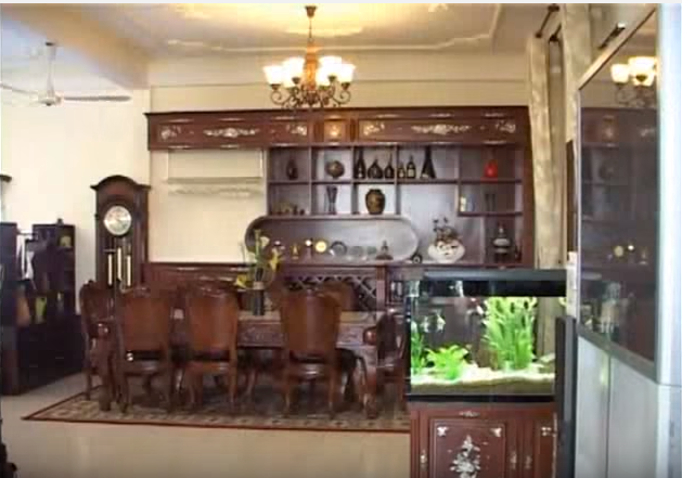 Đồ nội thất gỗ đắt tiền khiến ngôi nhà trở nên sang trọng hơn bao giờ hết. Do Mỹ Lệ thích gốm, tượng còn ông xã của chị lại thích các vật dụng làm từ gỗ, chính vì vậy giá sách, bàn ăn, tủ nhỏ đều được làm bằng gỗ với họa tiết chạm khảm tinh xảo.