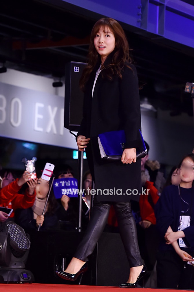 | Park Shin Hye với mái tóc khác lạ tới ủng hộ "Kim Tan" của cô. |