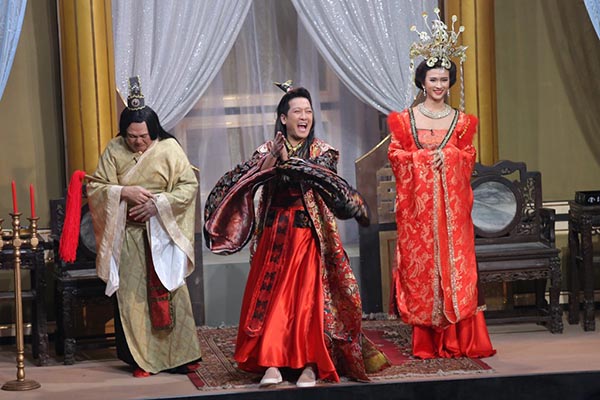 Đặc biệt, khi Kim Tuyến thắc mắc việc avatar facebook sao lại để hình 1 nữ nhi xinh đẹp, Trường Giang bất ngờ lao tới, ôm cổ, hôn lên má hoàng hậu và nói: "Ngàn lần xin lỗi nàng".
