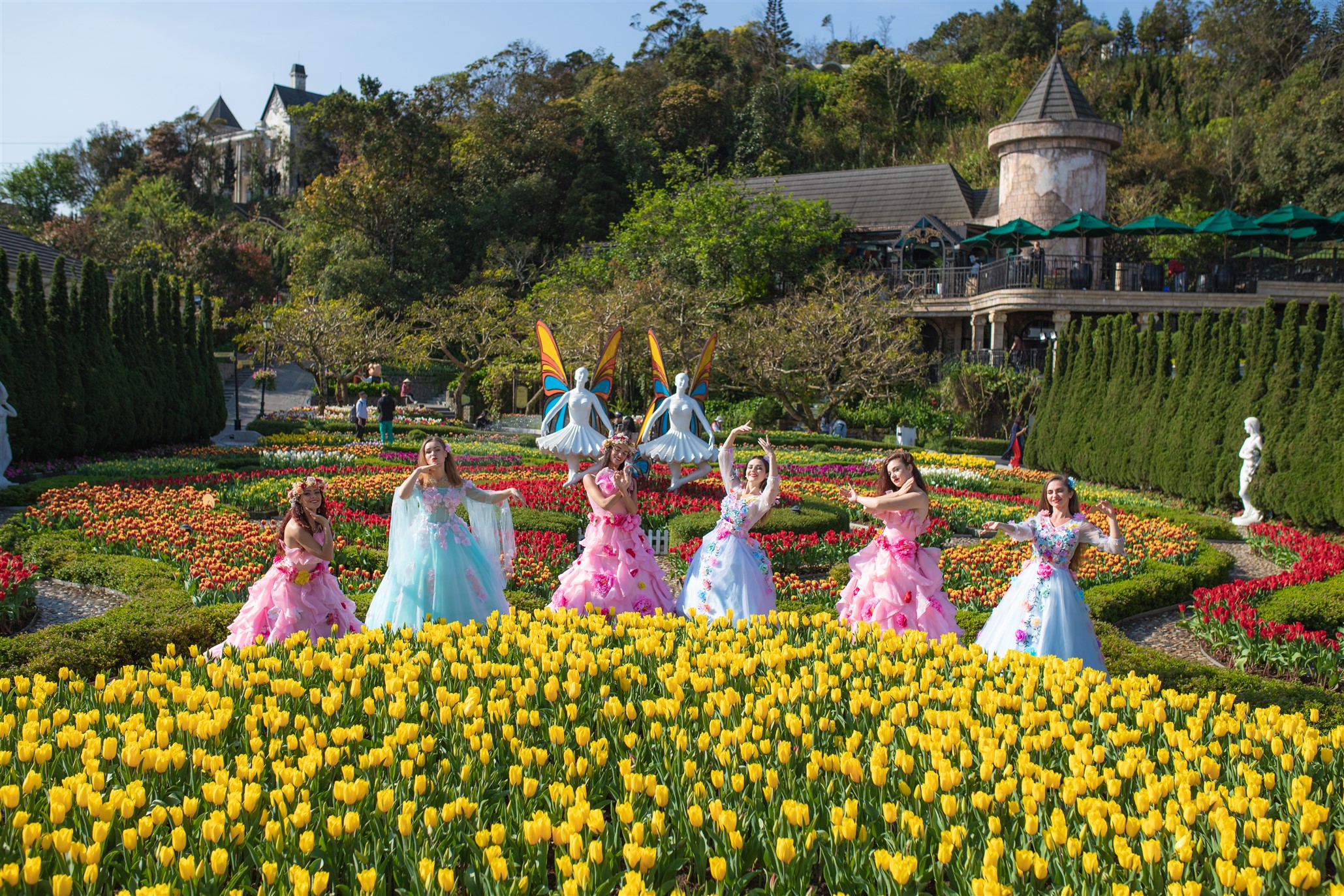 Cả một khung trời châu Âu đẹp như cổ tích giữa núi rừng kỳ vĩ, những vườn tulip đẹp kiêu sa trong tiết xuân, bữa tối ngọt ngào trong những nhà hàng ấm áp giữa sương mây bảng lảng buông… Các cặp đôi sẽ khó có thể tìm được chốn thiên đường yêu nào lãng mạn hơn Bà Nà Hills mùa này.