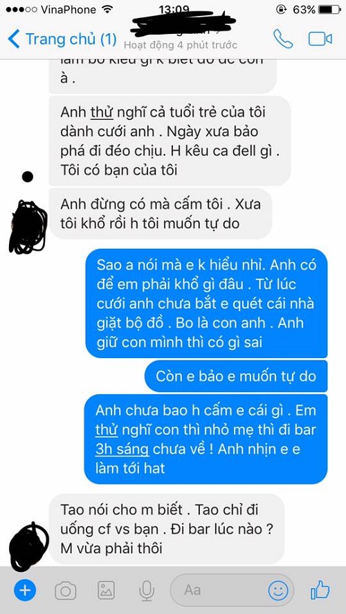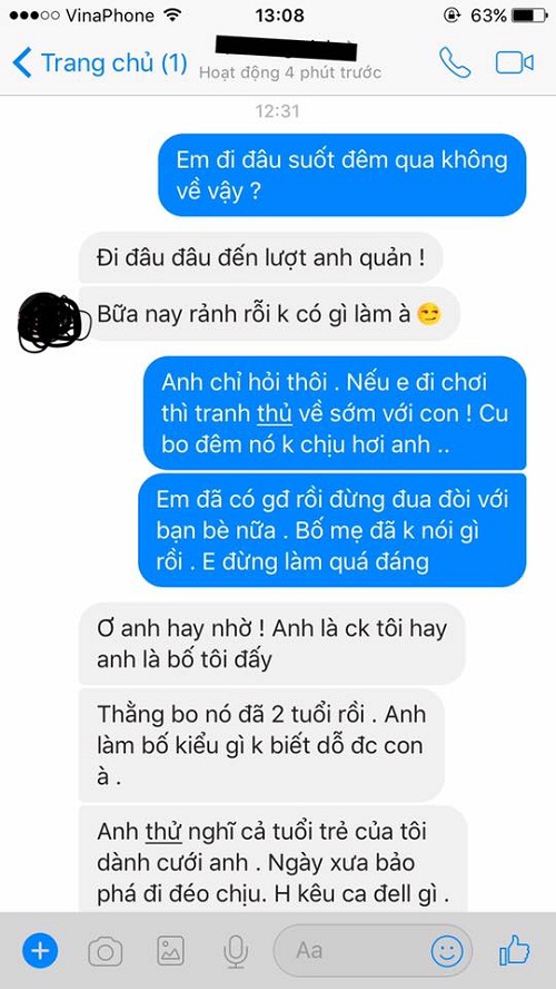 | Đoạn tin nhắn về cuộc nói chuyện giữa chàng trai và vợ |