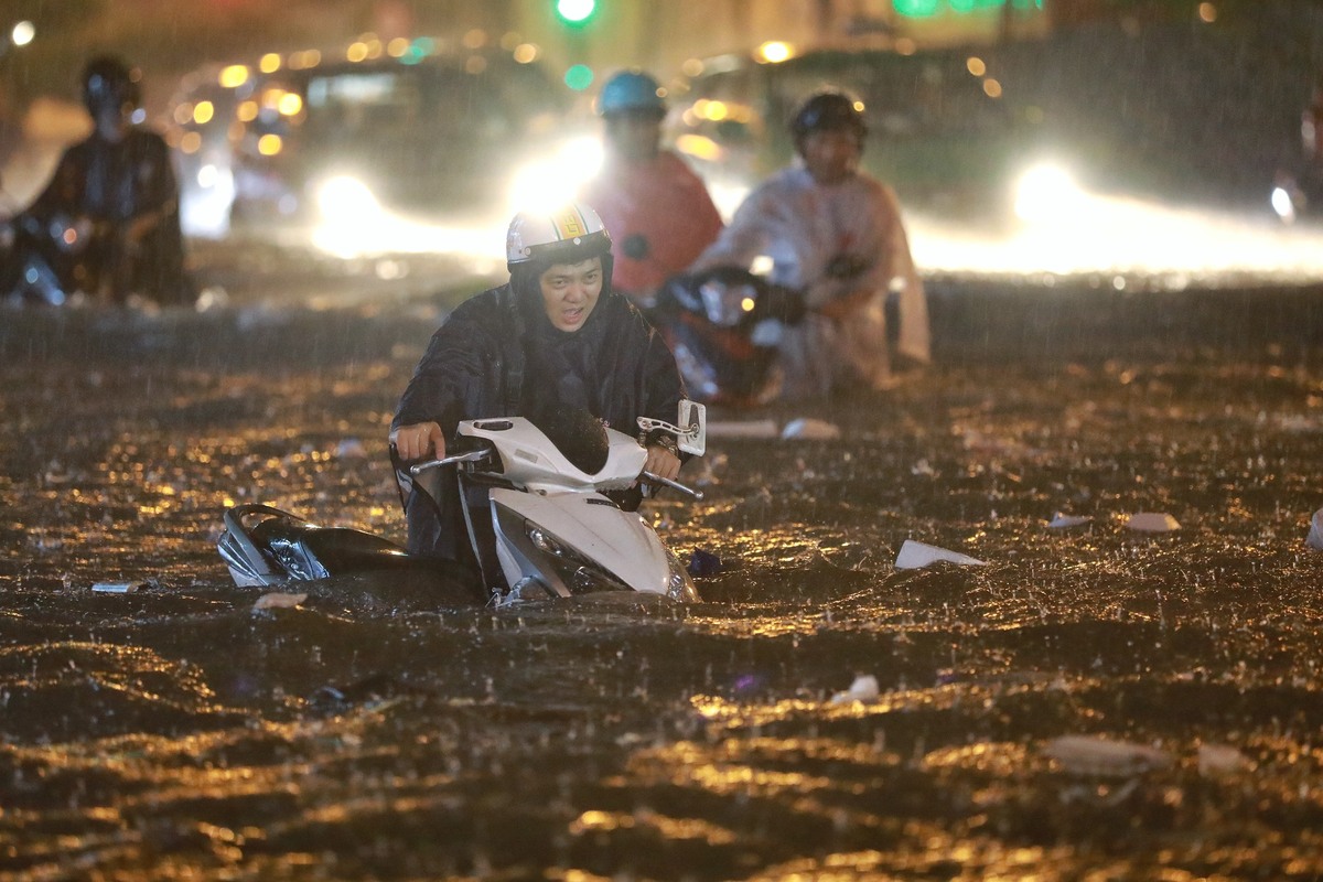 Cảnh người dân vật lộn với biển nước sau mỗi trận mưa lớn ở TP.HCM. Ảnh: Người Đưa Tin Pháp Luật |
