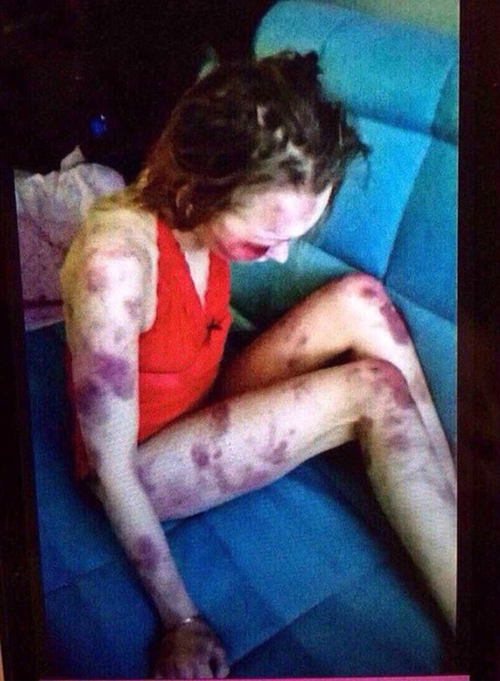 Maxim đã đánh cô liên tục để chứng minh rằng mình biết cách "dạy vợ" khi cô bày tỏ muốn rời bỏ gã. Hình ảnh từ cuộc tấn công tàn bạo cho thấy Anastasia ngồi trên ghế sofa với vết thâm tím trải rộng trên toàn bộ cơ thể.