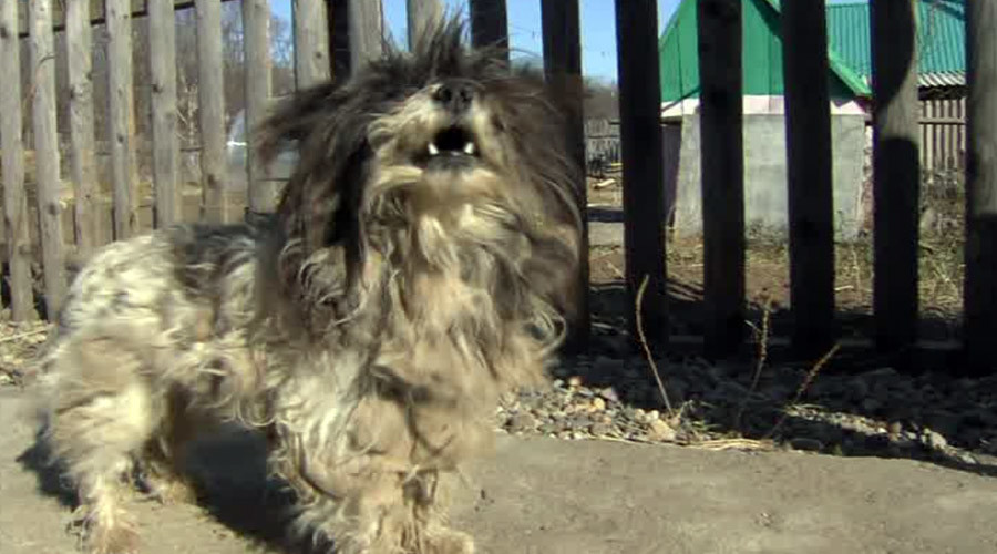 Chú chó nhỏ đã dũng cảm chống lại con gấu để cứu hai em bé. Ảnh nguồn: Russia Today. |