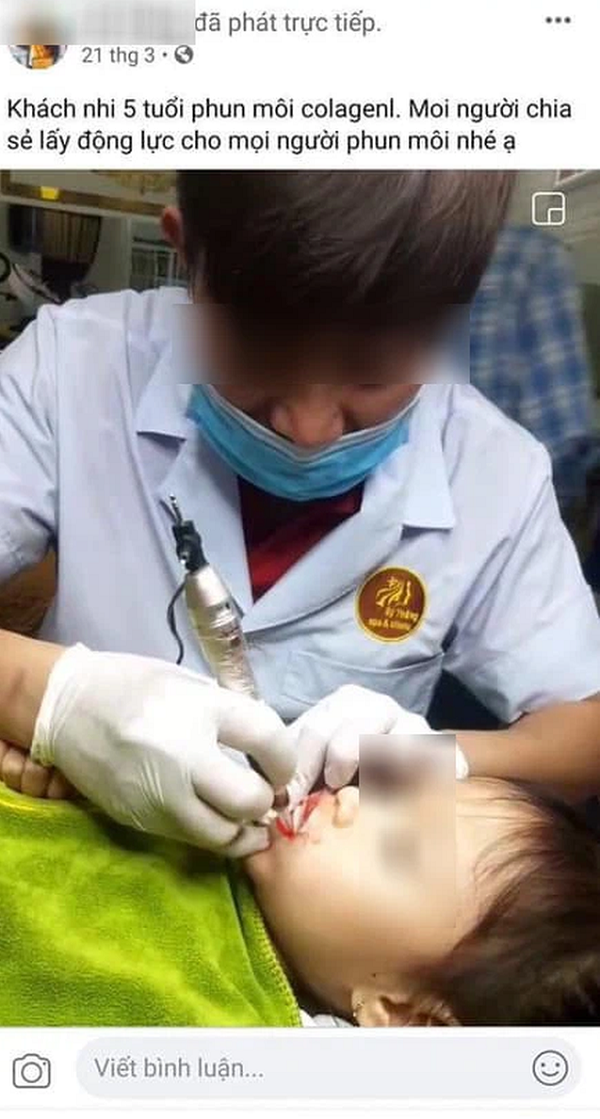 Theo tìm hiểu, bé gái được phun môi trên mạng xã hội là do chủ cơ sở này trực tiếp thực hiện cho con gái từ cuối tháng 3.