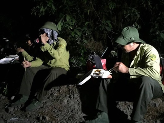 Những suất cơm được kịp thời tiếp sức cho những người tham gia cứu rừng. Ảnh: Báo Tố Quốc |