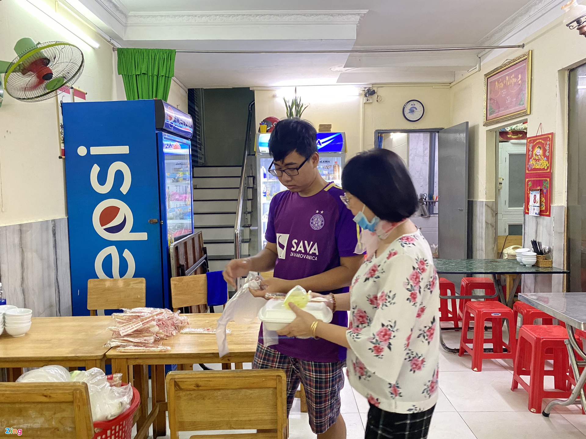 Phong giúp đỡ công việc tại quán ăn của bà Dung khi có thời gian rảnh. Ảnh: Zing |