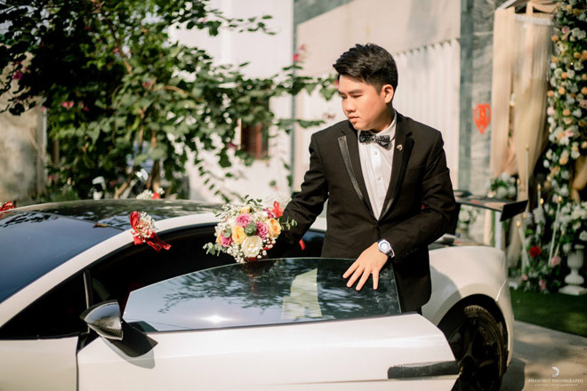 Đích thân chú rể đã lái siêu xe Lamborghini Gallardo LP560-4 của mình xuống thành phố Vinh đón cô dâu về dinh. Được biết, chiếc xe hoa này trị giá khoảng 19 tỷ đồng. |