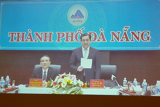 Chủ tịch Huỳnh Đức Thơ báo cáo từ điểm cầu Đà Nẵng. Ảnh: Dân Trí |