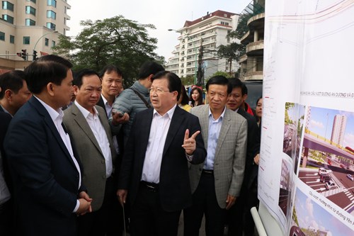 Phó Thủ tướng Trịnh Đình Dũng kiểm tra các công trình hạ tầng giao thông Hà Nội. |