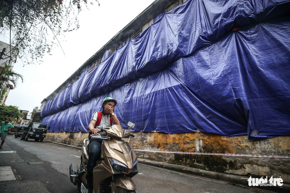 Người dân vẫn phải bịt mũi khi đi qua hiện trường vụ hoả hoạn tại nhà máy Rạng Đông - Ảnh: TTO |