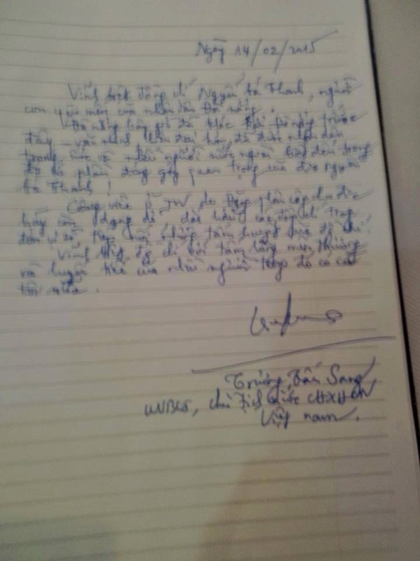 ![]() Chủ tịch nước viết trong sổ tang. Ảnh: Một thế giới |