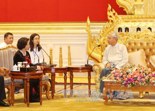 Chủ tịch Quốc hội Nguyễn Thị Kim Ngân đến chào Tổng thống Cộng hòa Liên bang Myanmar ngài Htin Kyaw chiều 30/9. Ảnh: Trọng Đức/TTXVN. |