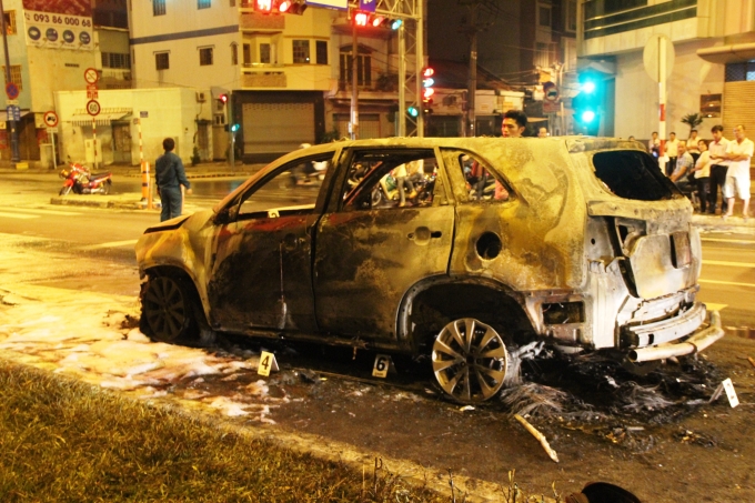 Công an cũng đưa hai phương tiện bị cháy rụi về trụ sở để phục vụ điều tra.