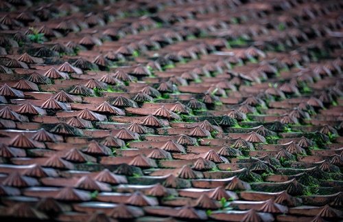 Mái ngói hình mũi hài mọc rêu phong tạo nên vẻ cổ kính, linh thiêng - Ảnh: Tri thức trực tuyến |