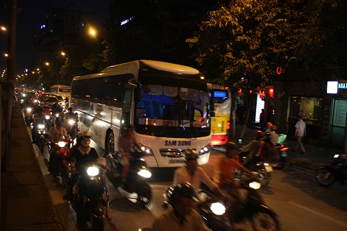 Các phương tiện đã được phân làn để đi vào phần đường còn lại. Do chưa quen với việc lưu thông tuyến đường mới, các phương tiện lưu thông tăng lên đột biến đã khiến vực này giao thông ùn ứ, hỗn loạn vào các giờ cao điểm.