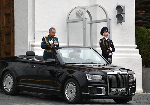 Bộ trưởng Quốc phòng Nga Sergei Shoigu kiểm tra trước lễ duyệt binh. Ảnh: Sputnik |