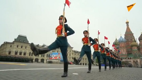 Các ban nhạc quân đội đang rời Quảng trường Đỏ, nhường chỗ cho thiết bị quân sự tham gia cuộc diễu hành. Ảnh: Sputnik |