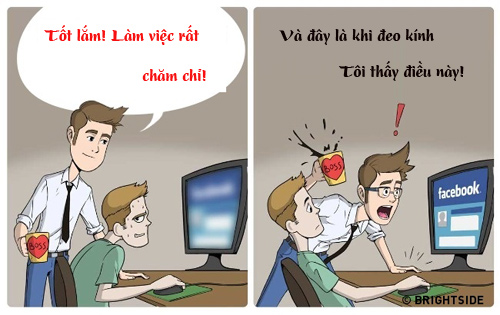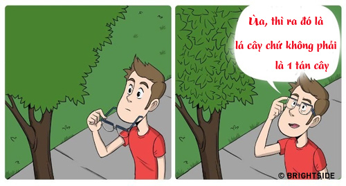 Những người mắt tinh sẽ không bao giờ hiểu nổi nỗi khổ của những người '4 mắt'. Khi cận 'cả thế giới thu bé lại vừa bằng một sợi chỉ' nếu bạn không đeo kính, cũng có khi cận bạn sẽ vô tình chào bố mẹ thành cô chú, và cận đôi khi cũng cản trở phút giây lãng mạn khi yêu đó...