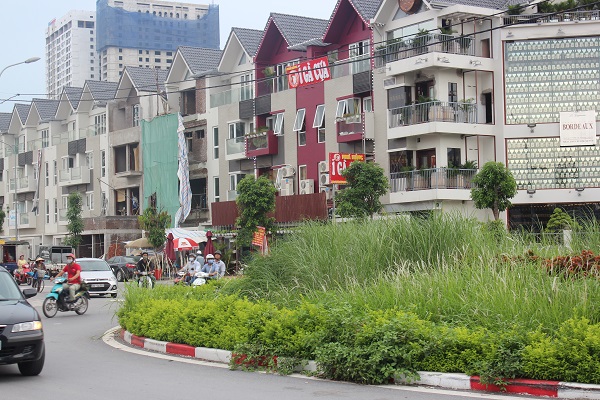 Tại tuyến đường Châu Văn Liêm thuộc quận Nam Từ Liêm, dải phân cách giữa đường gần như chỉ dành cho cỏ dại mọc. |