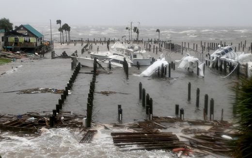 Nhiều tàu thuyền đỗ ngoài bờ biển bị sóng đánh chìm, hư hỏng nặng. Ảnh: USA Today |