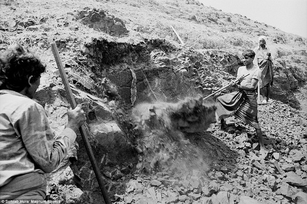 Người nông thôn trong các ngôi làng đặc trưng ở Pati, Madhya Pradesh, Ấn Độ. Họ đang cắt đá để mở rộng đường quốc lộ theo chính sách của chính phủ. Mức lương tối thiểu của họ hiện nay là vào khoảng 70 nghìn đồng một ngày. |