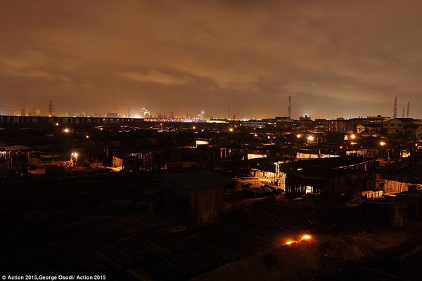 Ban đêm ở khu ổ chuột Okobaba tại bờ sông Lagos Lagoon, Nigeria. Nơi này đang bị xem xét xóa sổ bởi chính quyền khiến người dân vô cùng lo lắng. |