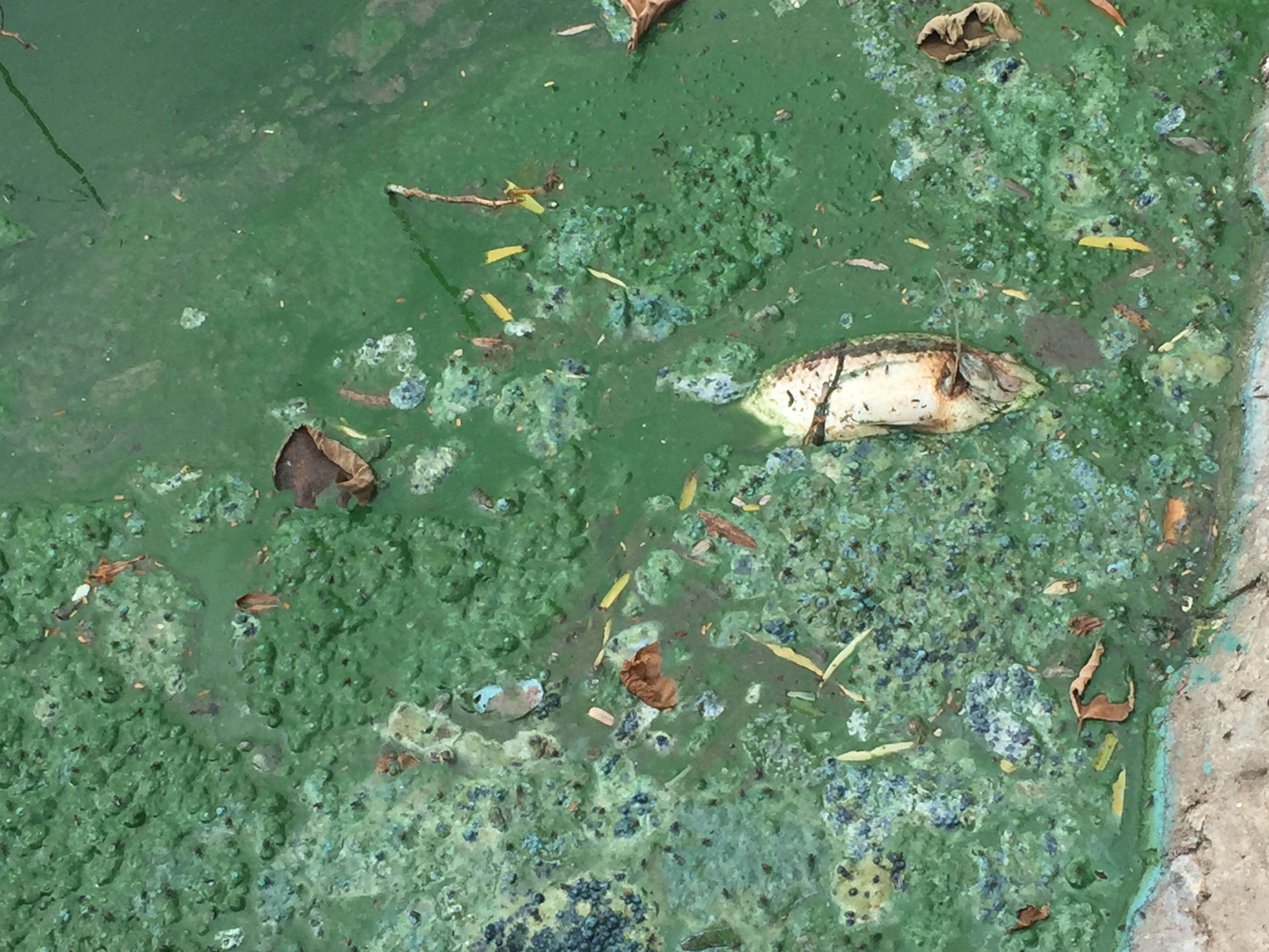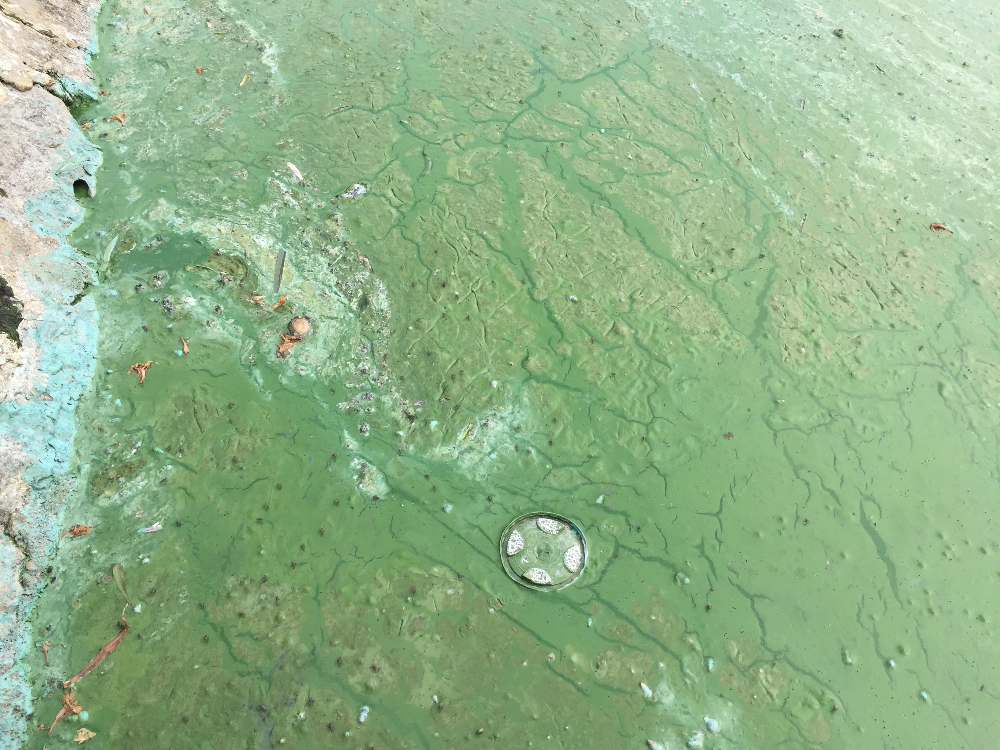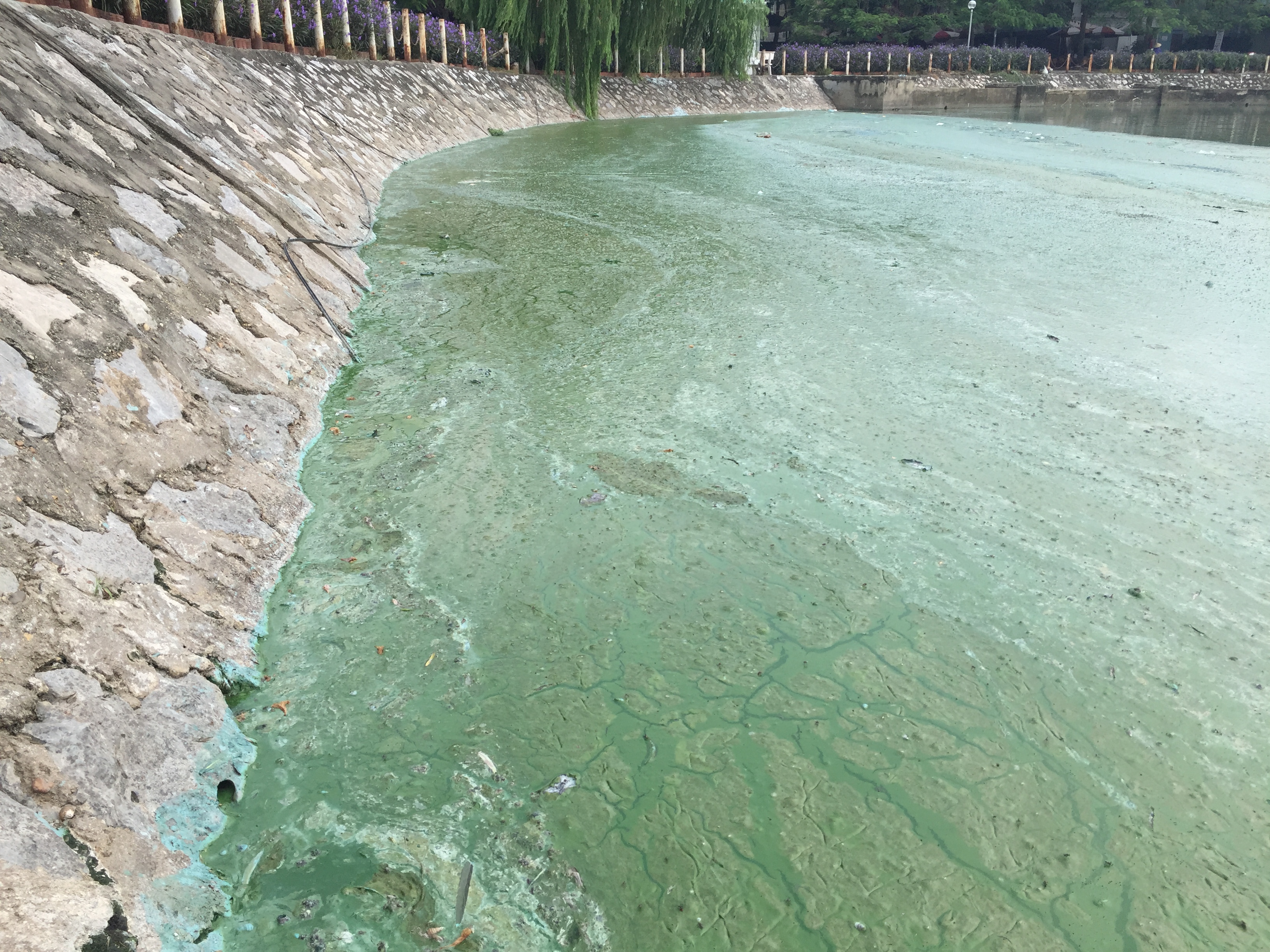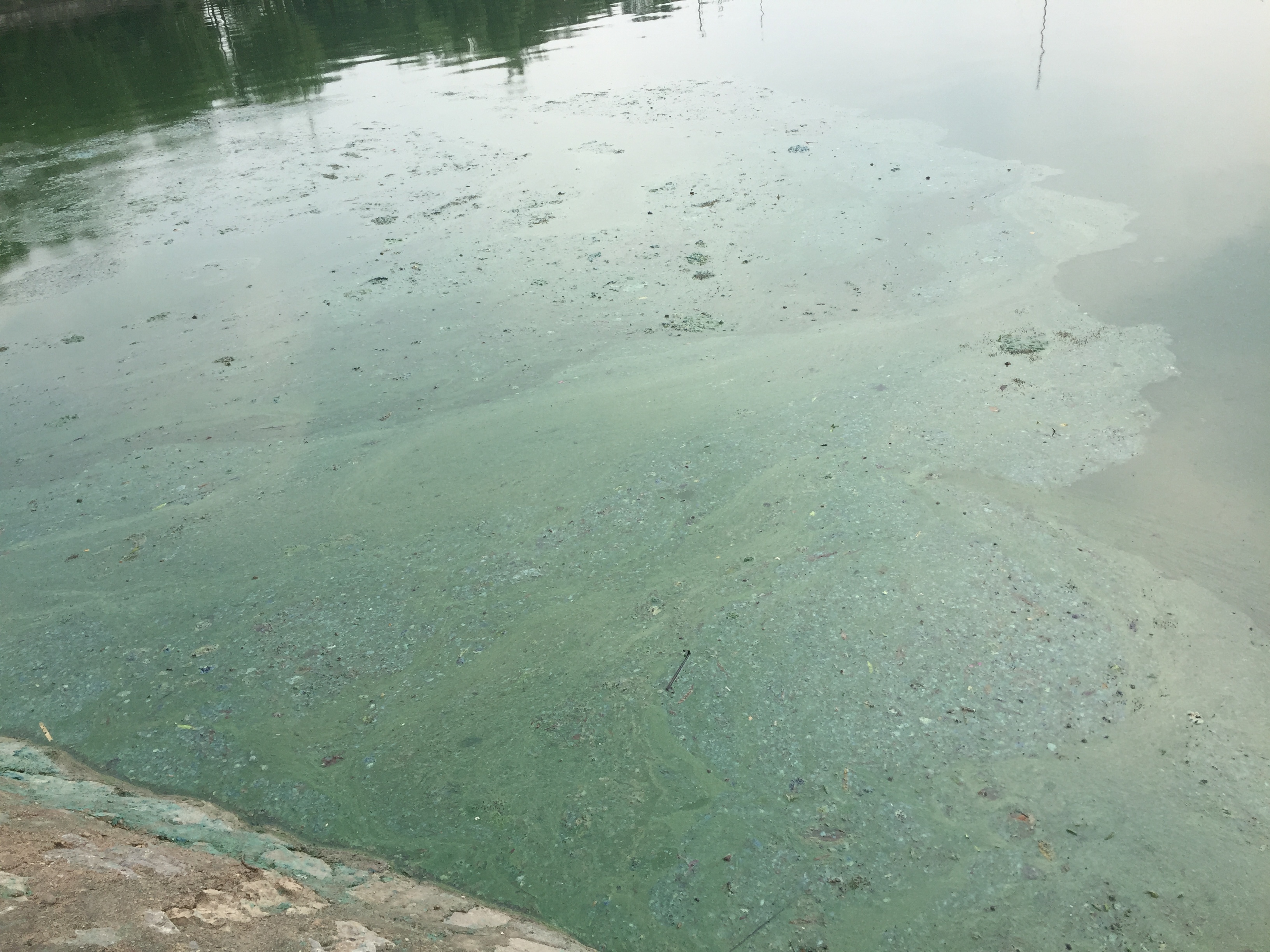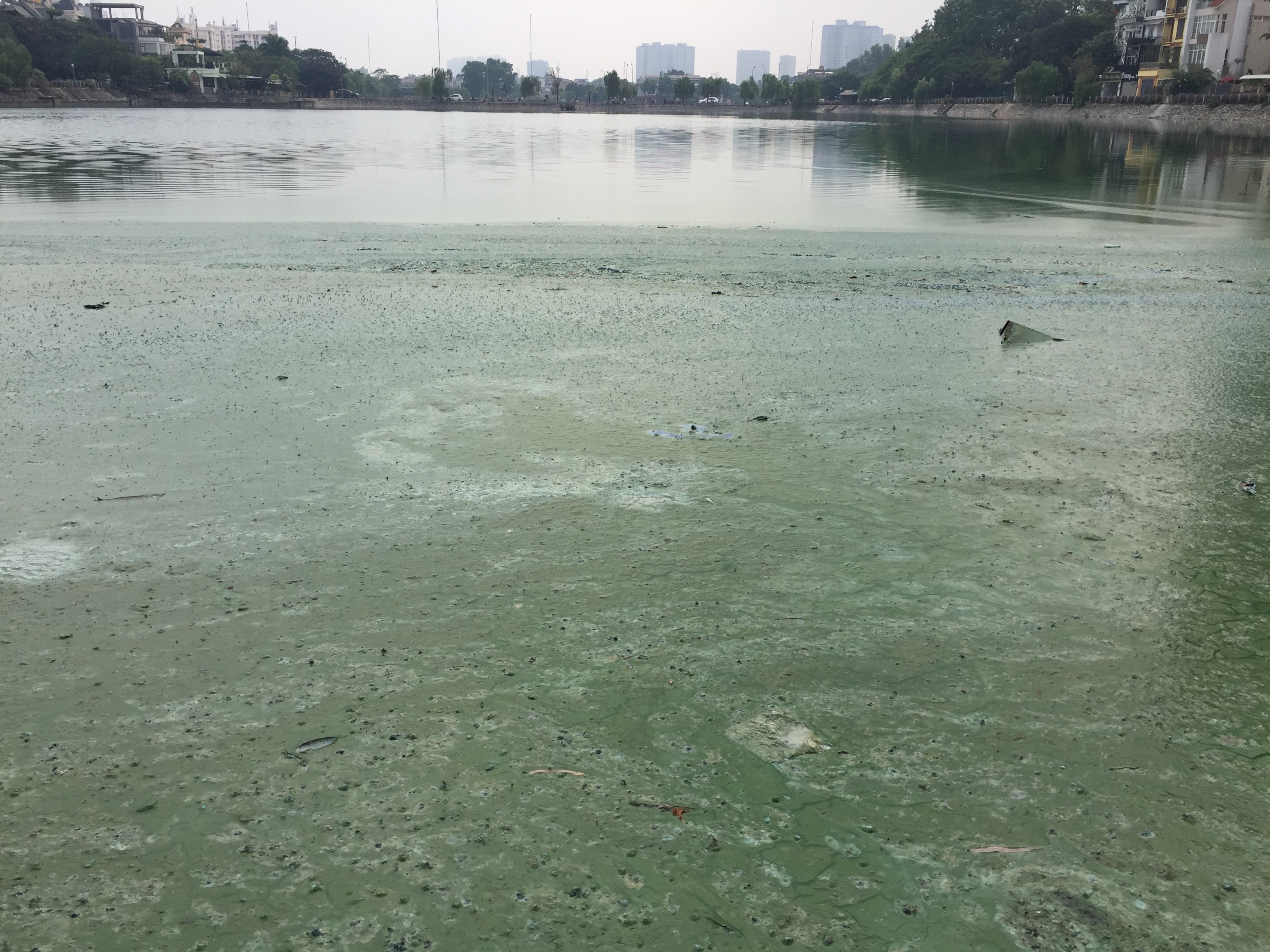 Hiện tượng nổi váng, có màu khác lạ trên hồ Văn Quán. |