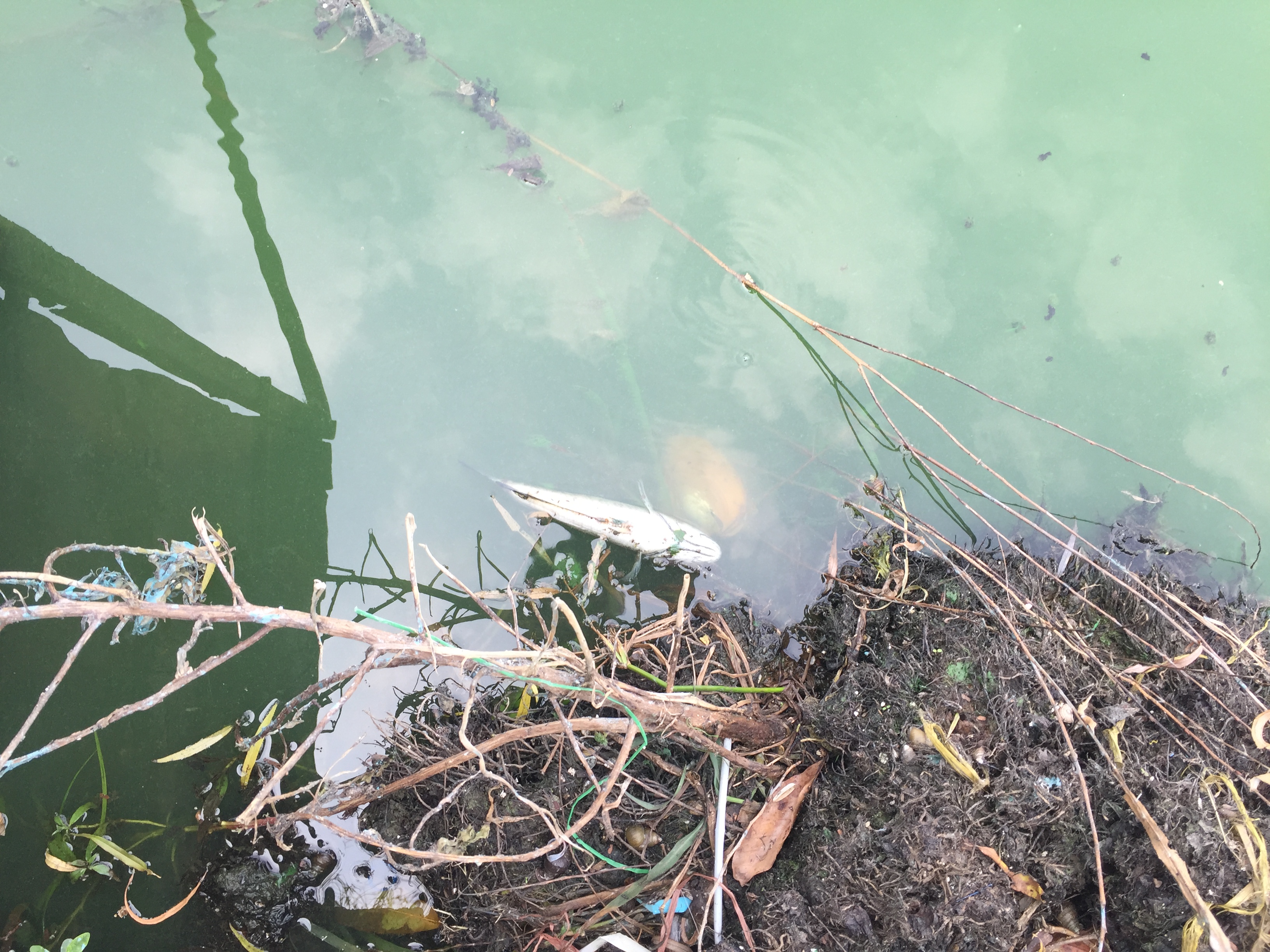 Cá chết trắng nổi lên trên bề mặt nước. |
