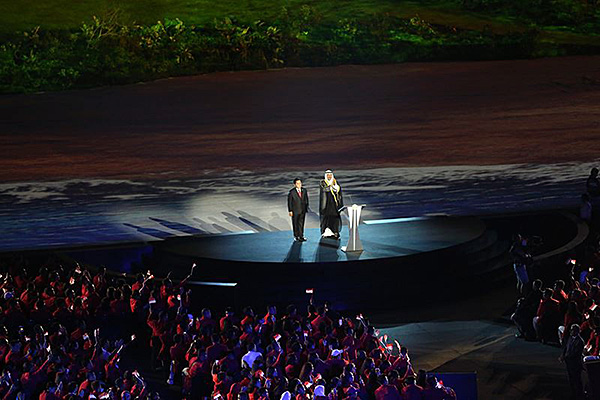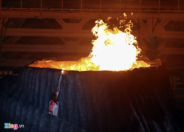 Lễ khai mạc Asaid 2018 kết thúc sau khi ngọn đuốc được thắp sáng vô cùng kì vĩ. Ảnh: Tú Anh. |