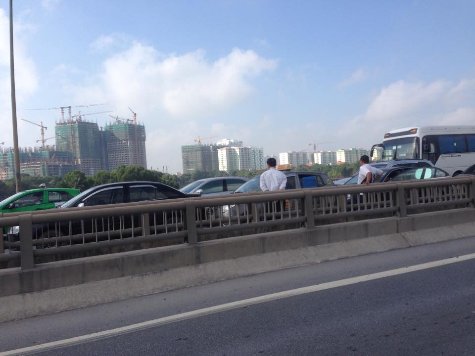 Người đi đường mệt mỏi vì ùn tắc kéo dài. |