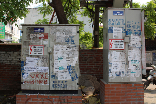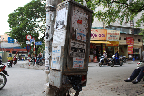 “Khoan cắt bê tông”, “Lắp đặt Internet”, “Cho thuê nhà”, "Tuyển nhân viên", "Hỗ trợ tài chính" ... là những hình ảnh quảng cáo, rao vặt trái phép đang bám lên hàng trăm cột điện, tủ điện, tường nhà, cây xanh, thậm chí cả cột biển điểm dừng xe buýt trên địa bàn Thành phố, không chỉ gây mất mỹ quan cho Đô Thị mà còn "tấn công" và che luôn đi biển cảnh báo an toàn, làm tăng nguy cơ về tai nạn điện, gây khó khăn cho công tác kiểm tra điện.