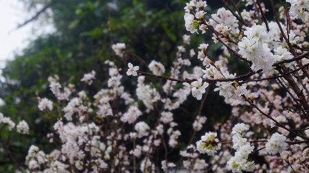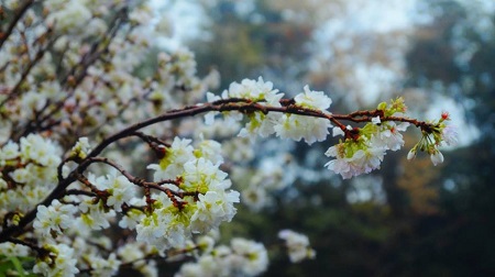 | Giọt mưa động trên cánh hoa tạo thêm phần sự vẻ đẹp nhẹ nhàng, tinh tế của hoa anh đào trắng. |