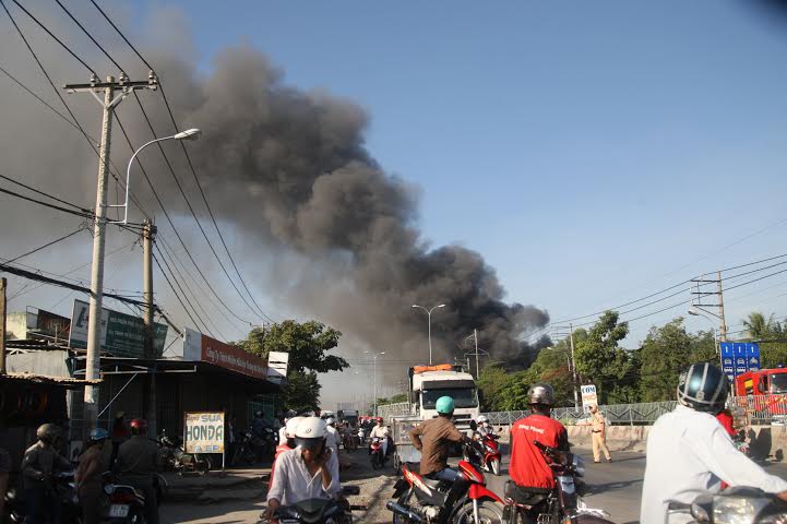 Cột khói bốc cao khoảng hơn 30m. (Ảnh Tuổi trẻ) |