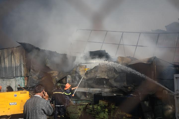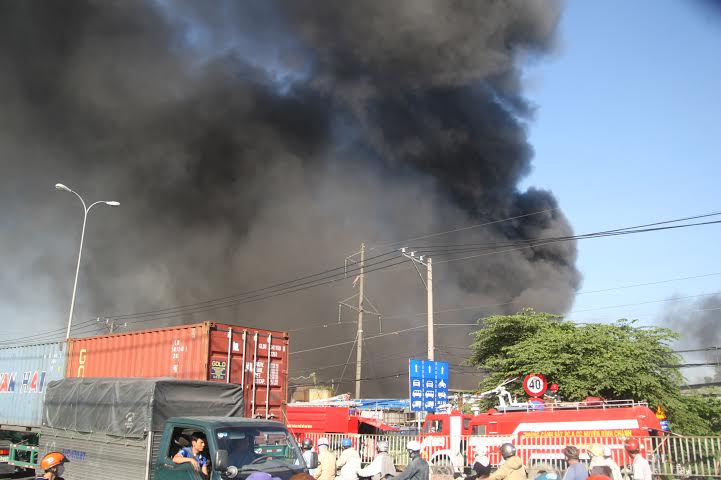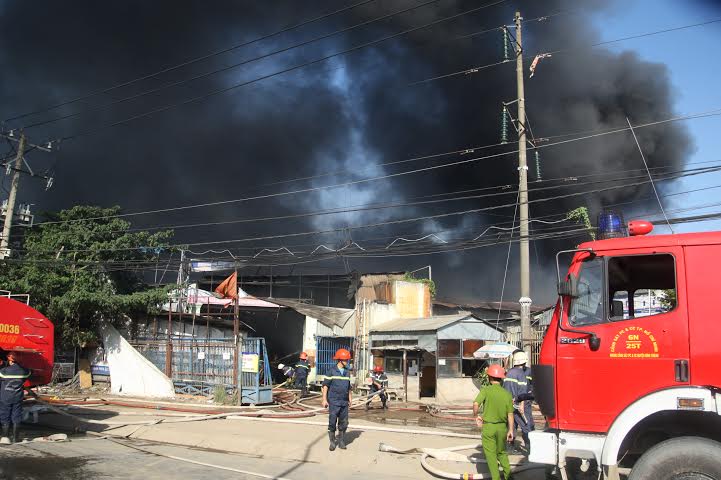 Nhận được tin báo, lực lượng PCCC huyện Bình Chánh, quận Bình Tân đã điều động 18 xe cứu hỏa cùng hàng trăm cán bộ chiến sĩ tới hiện trường để chữa cháy.