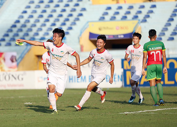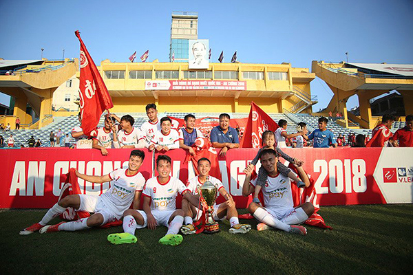 Giành 3 điểm ở trận đấu này, Viettel có 38 điểm sau 17 vòng đấu (hơn đội Hà Nội B đứng thứ 2 với khoảng cách 7 điểm), qua đó chính thức lên ngôi vô địch sớm 1 vòng đấu và thăng hạng lên chơi V-League năm sau. Ngay khi giành quyền lên chơi V-League, CLB Viettel xin được đổi tên thành Thể Công, đánh dấu sự trở lại của một thương hiệu lừng danh một thời ở giải đấu lớn nhất Việt Nam. Ảnh: Vietnamnet. |