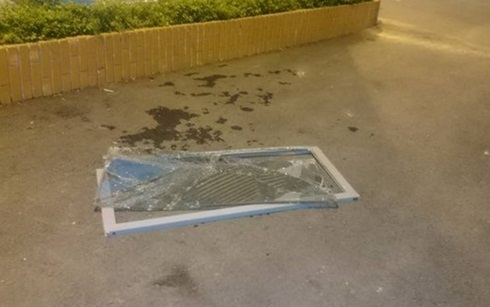 Cánh cửa sổ vỡ nát khi rơi từ tầng cao xuống (Ảnh: Độc giả cung cấp). |