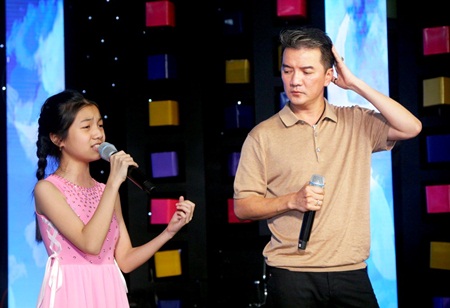(ĐSPL) - Mr. Đàm bất ngờ xuất hiện tại buổi tổng duyệt để tập dợt tiết mục song ca cùng với bé Lam Giang – thí sinh chương trình Người Hùng Tí Hon để chuẩn bị cho đêm Chung kết diễn ra vào tối thứ Bảy tuần này.