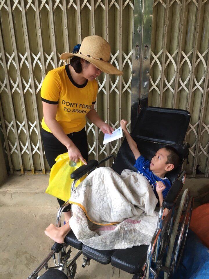 CEO Nguyễn Mai trao quà cho em bé bị khuyết tật |