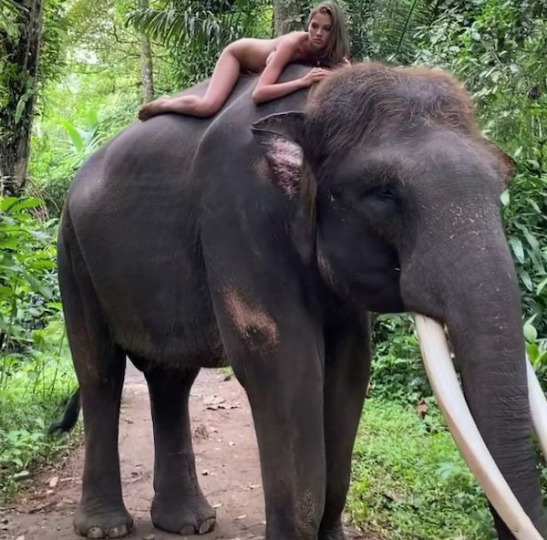 Trong số đó, người mẫu trẻ đã đăng tải hình ảnh cô khoả thân tạo dáng bên một chú voi tại Bali. Hình ảnh này sau đó đã bị chỉ trích gay gắt đến từ dư luận. Trong đó, một người dùng Instagram đã để lại bình luận: "Thật tội nghiệp chú voi. Bạn không cảm thấy việc khoả thân nằm lên chúng là một điều đáng xấu hổ ư? Dù gì đó cũng là một sinh vật sống. Tiền bạc đã làm lu mờ suy nghĩ của mọi người".