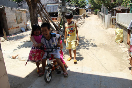 | Những lần từ Bệnh viện Trung ương Huế điều trị xong rồi về nhà là khoảng thời gian hạnh phúc đối với bé Trinh. Khi đó, em được thoải mái vui chơi với bạn bè, ăn buổi cơm gia đình đơn sơ nhưng mặn mòi hương vị quê nhà miền biển Lý Sơn đầy nắng gió |