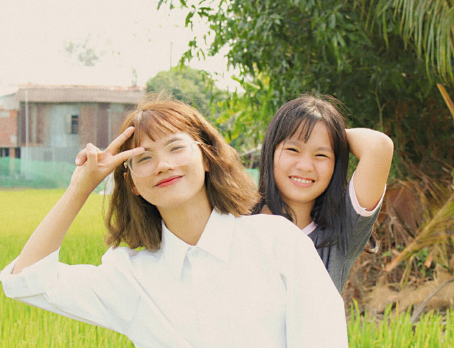 Thúy An (áo trắng) chụp ảnh cùng em gái. Ảnh: Thanh Niên |