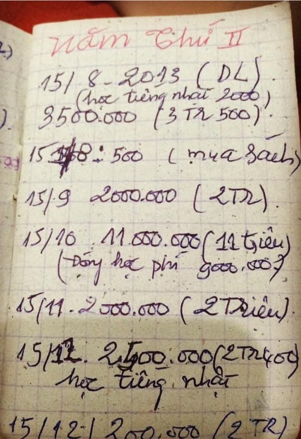 Nhìn cuốn sổ ghi chép khá đầy đủ các khoản chi ra trong suốt thời gian bản thân đi học đại học với tổng số tiên lên đến hàng trăm triệu, cô gái không khỏi bất ngờ rồi rưng rưng nước mắt, vừa xúc động vừa thương bố mẹ nhiều hơn.
