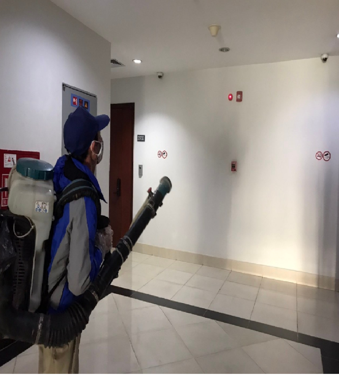 | Nhân viên công ty PMC thường xuyên lau chùi, phun khử trùng toàn bộ tòa nhà |